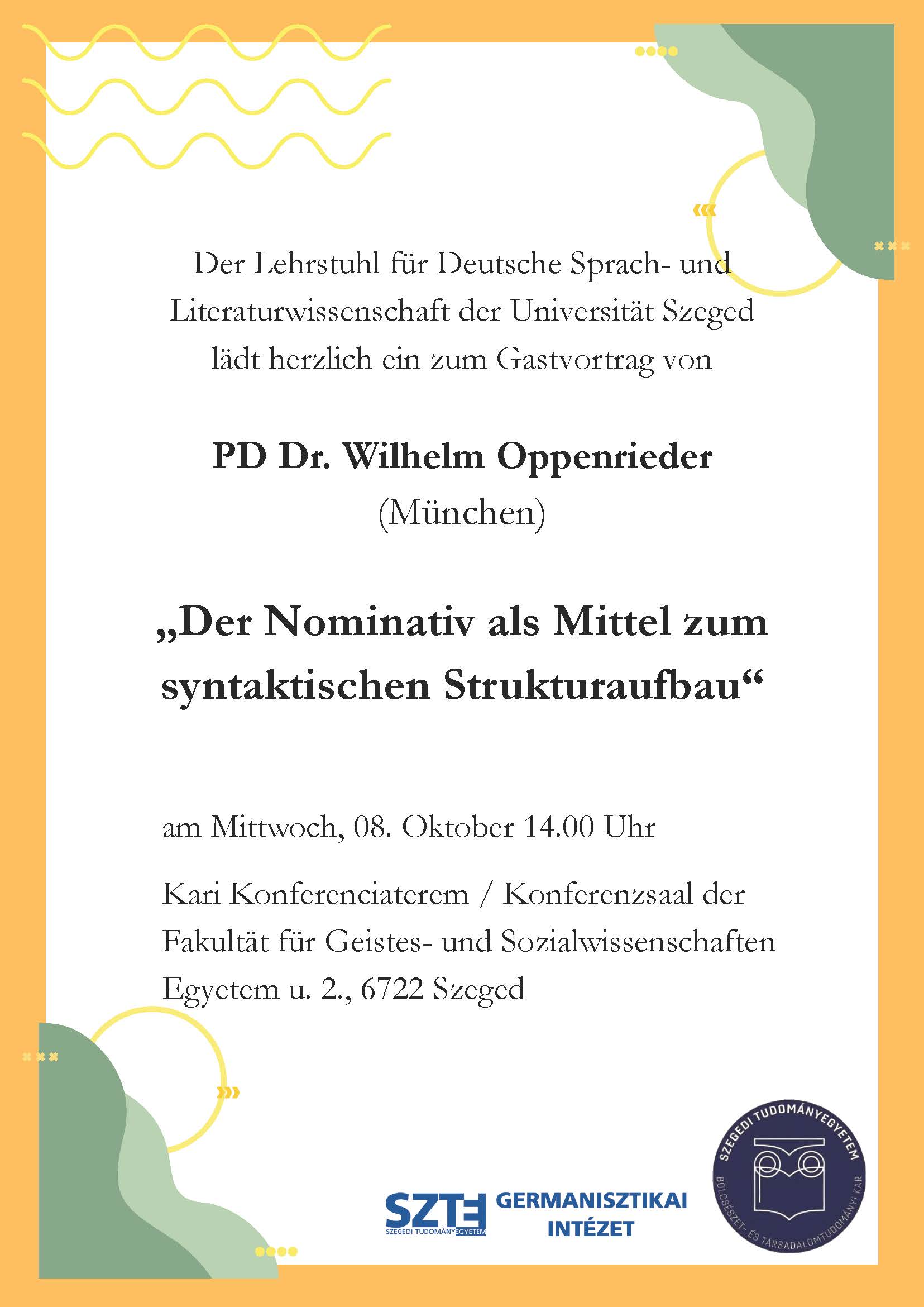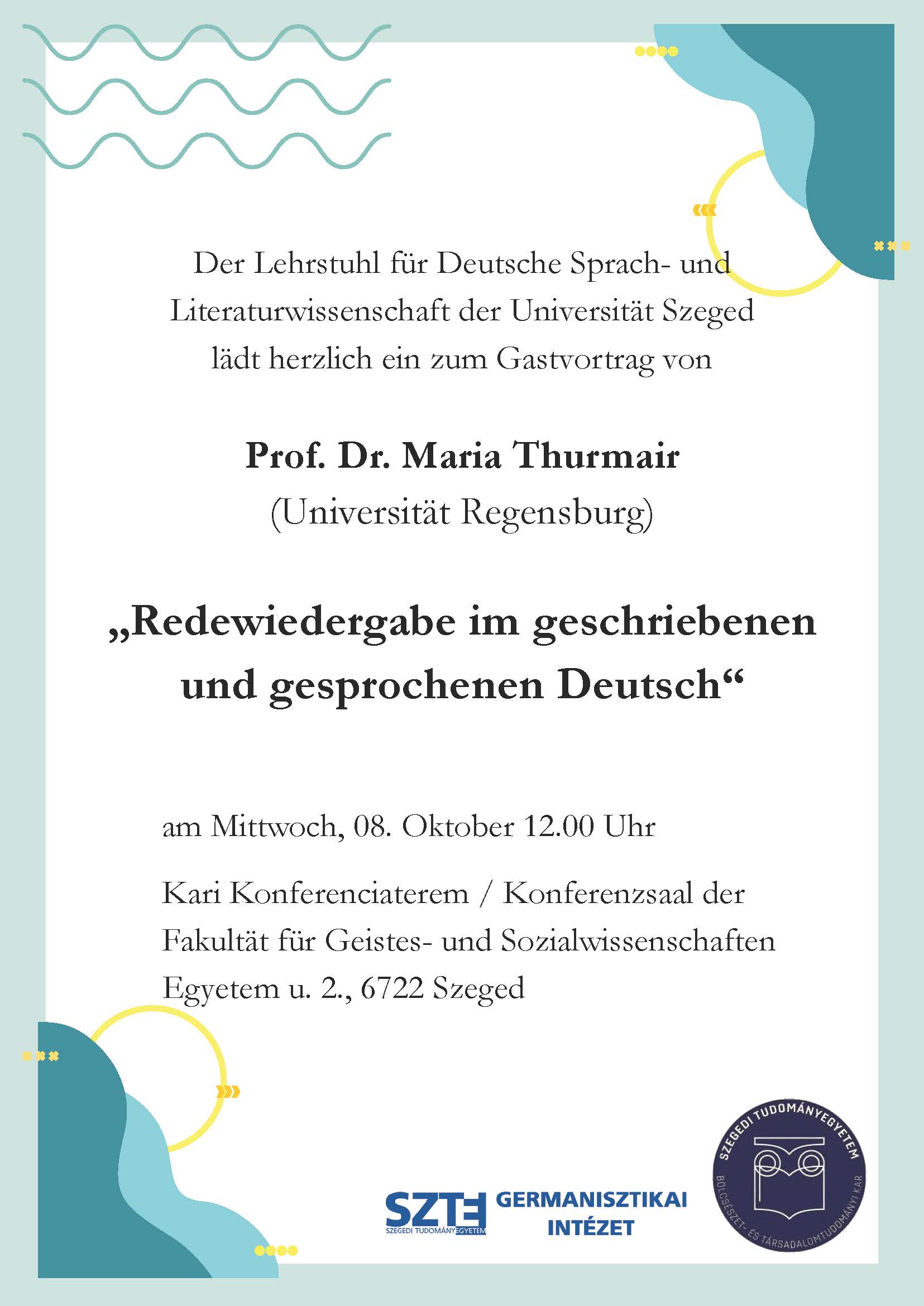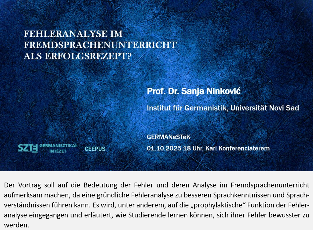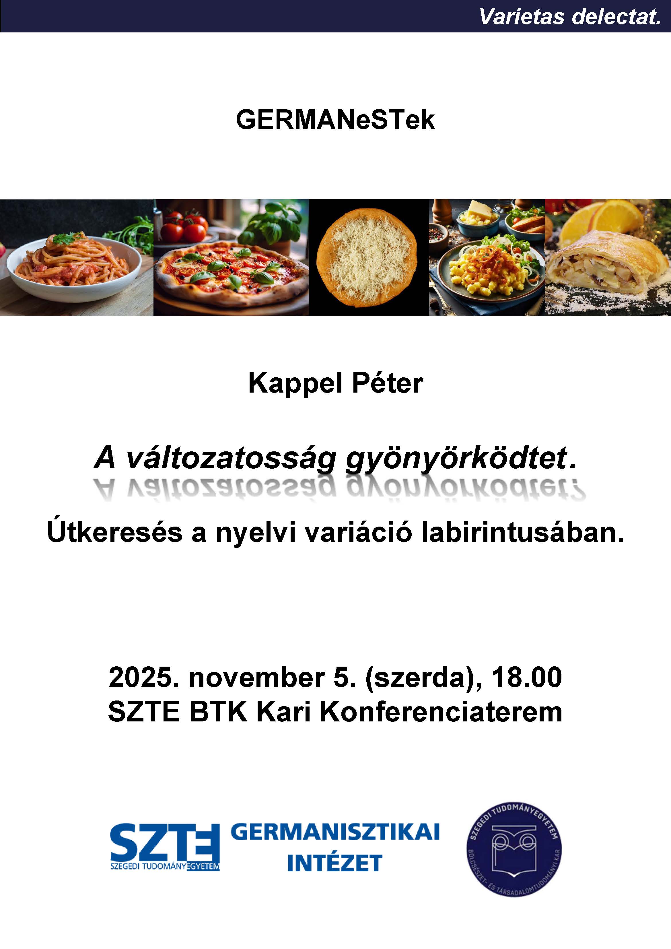 - helyszín: SZTE Bölcsészet- és Társadalomtudományi Kar főépülete, Egyetem u. 2., II. emelet, terem: "Német irodalmi szeminárium 2"
