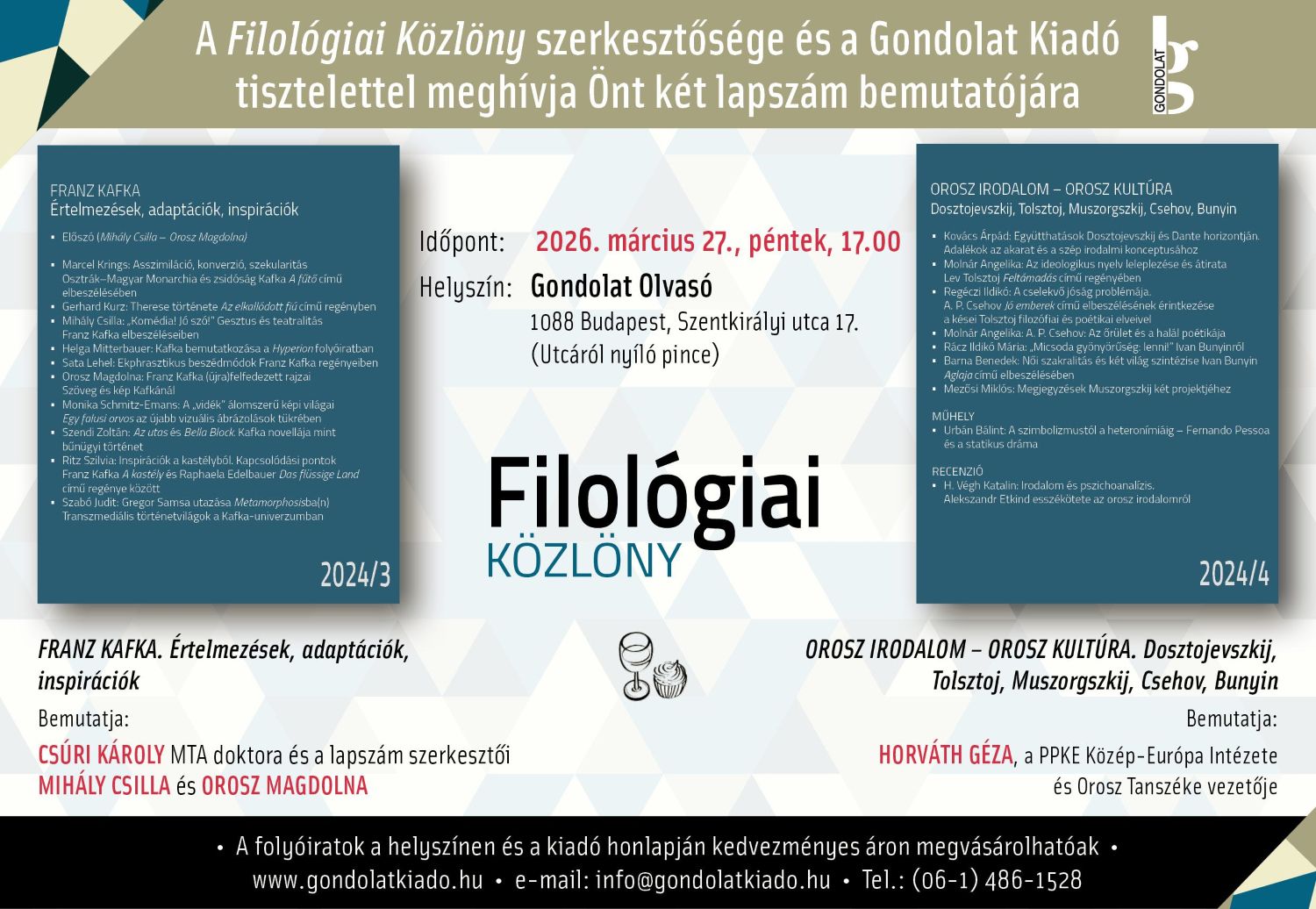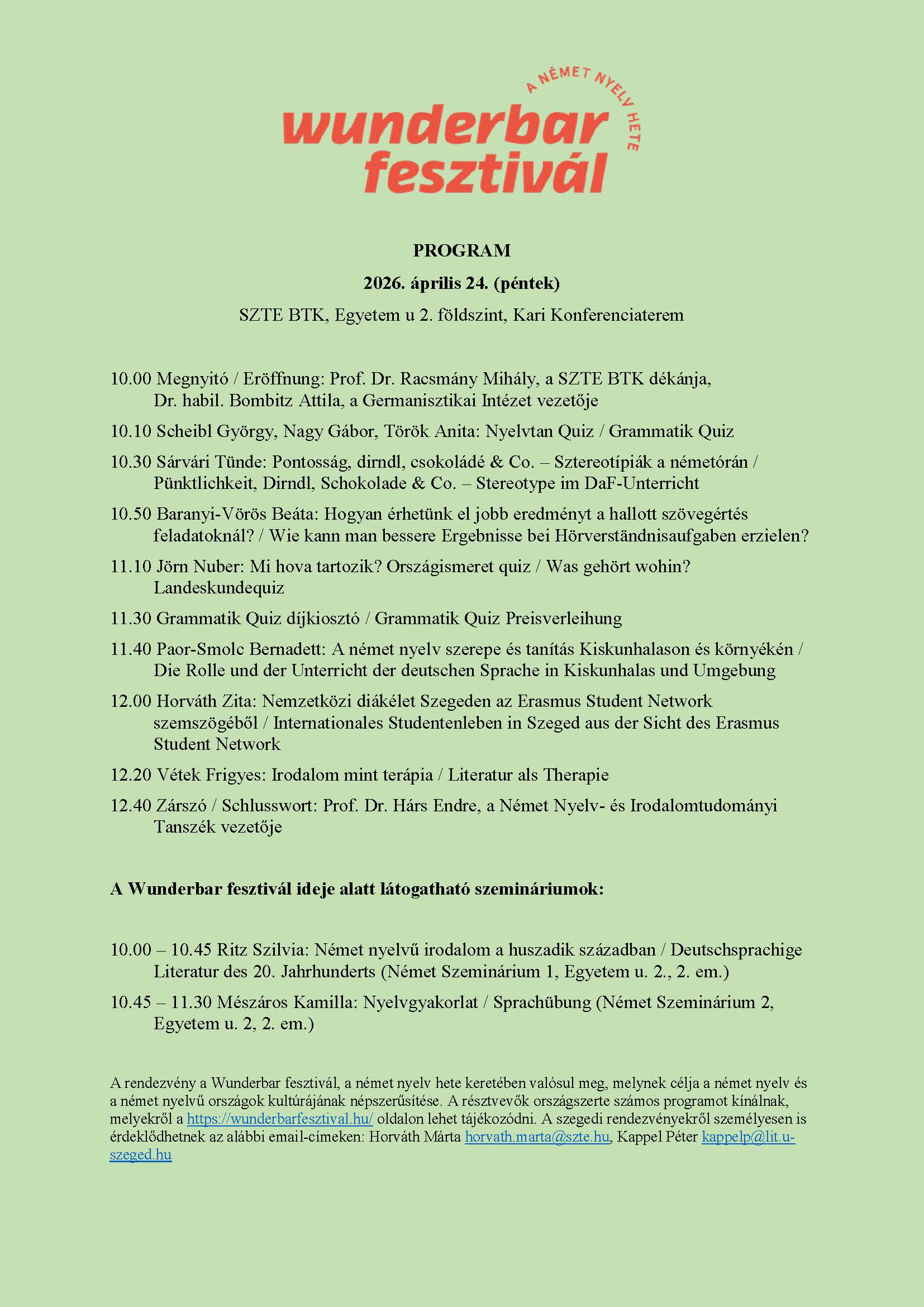 20.00-20.30 Osztrák-magyar irodalmi határjárás. Előadó: Dr. habil. Bombitz Attila